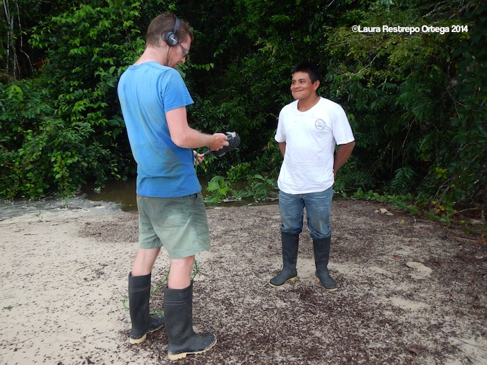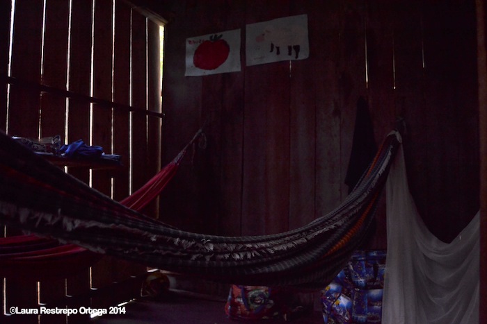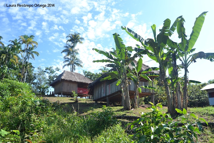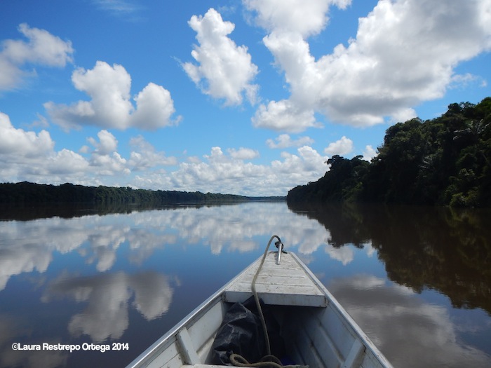We left Ñumi and headed back to the land crossing that would take us once again to the Caqueta River, about two and a half hours away. We stopped for lunch at a small house that guards the entrance to a chain of seven sacred lakes and exchanged bags of rice and sugar for smoked fish which ate on the sand with some casabe Edgar’s wife had packed for us.