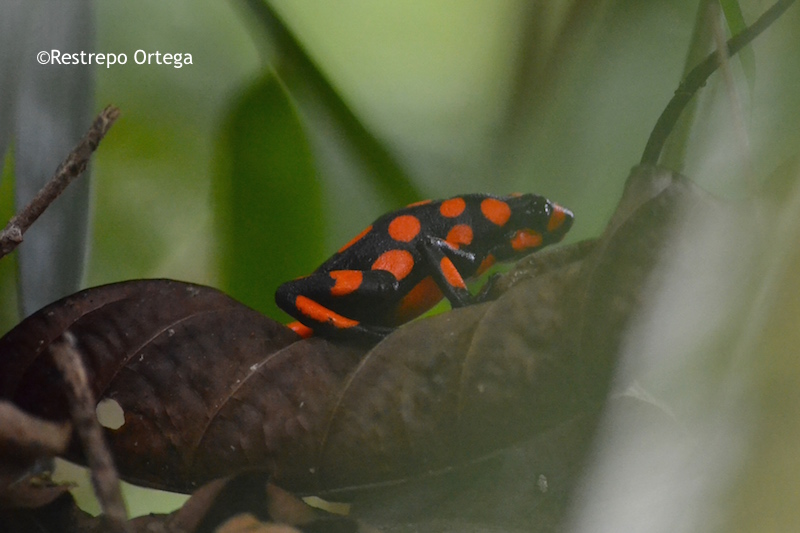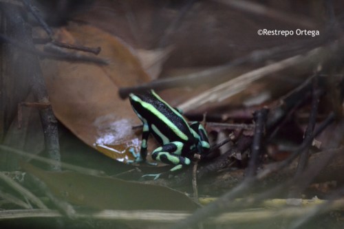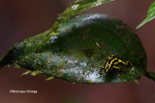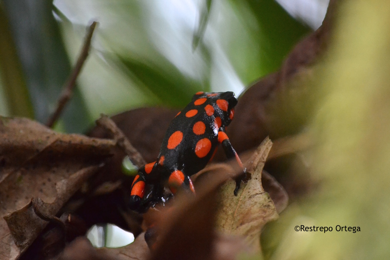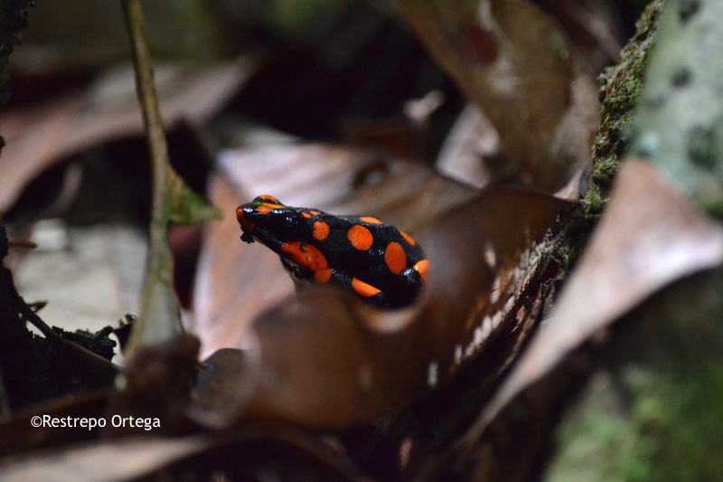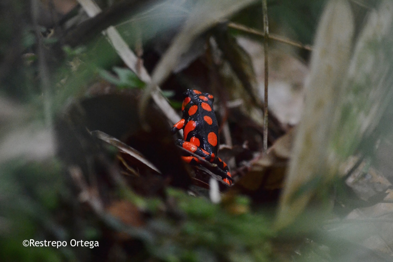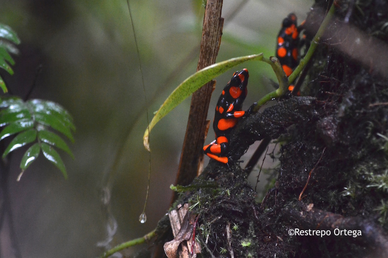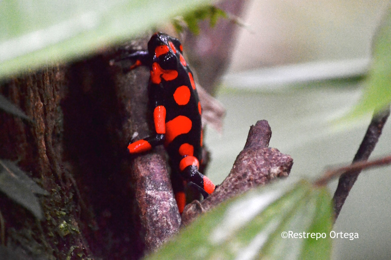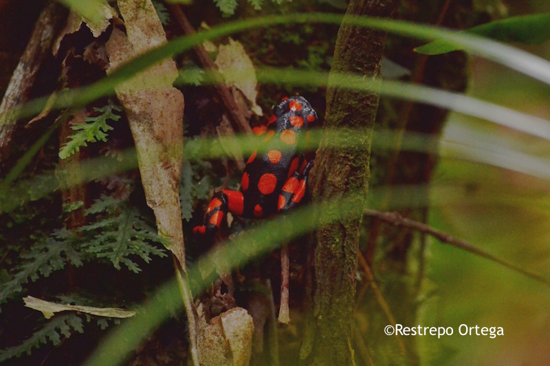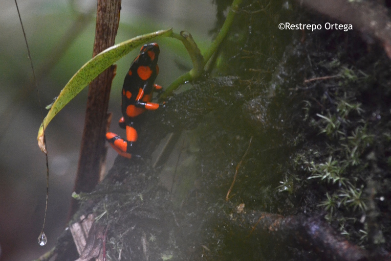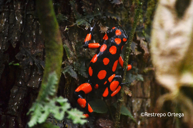 The most common near the town of Nuqui in the department of Choco are the red and black frogs which are about one or two centimetres long. They build their nests at the bases of mossy trees where there is dry brush and moist dirt. With luck and patience, you can also see black and yellow, and black and green ones.