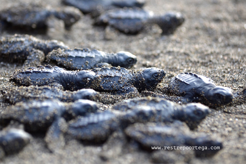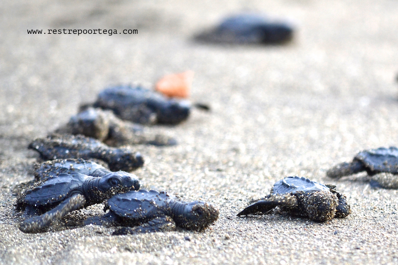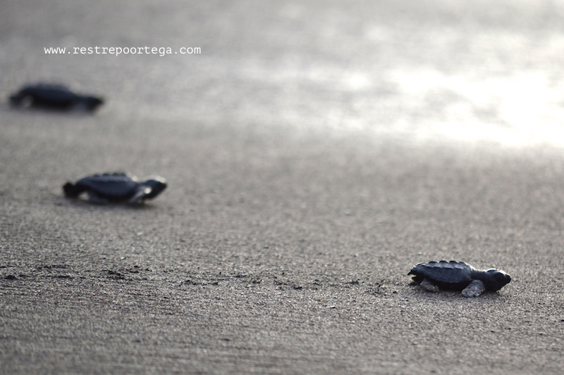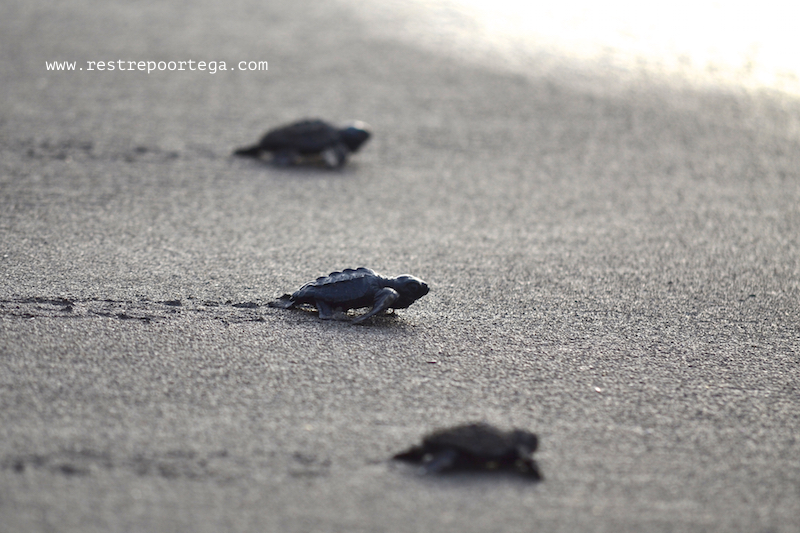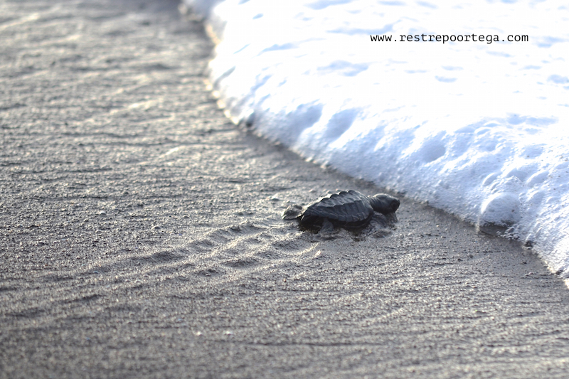 I was also lucky enough to witness something I have always wanted to see: The release of about 80 black turtle (Chelonia agassizii) hatchlings. One of the locals, who says he used to hunt these same turtles to sell and eat their eggs, has now dedicated himself to protecting the eggs and releasing the tiny turtles into the Pacific Ocean once they hatch, after 60-90 days of incubation in the sand.