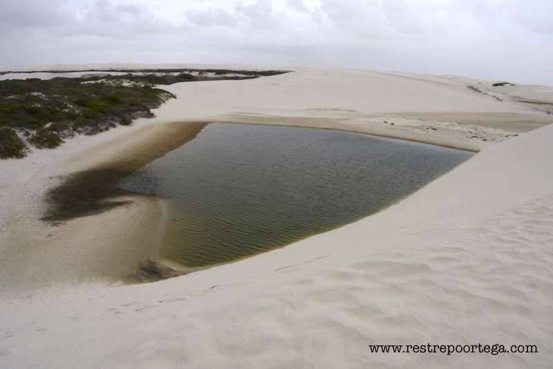 We reached the small Lagõa do Peixe—Fish Lagoon—which might have had 30 cm of blackish water at the most, but we dove in happily as a light rain started falling. I rolled down a dune and fell straight into the water, swimming among the tiny fish. On land, miniature frogs the colour of the sand jumped almost imperceptibly away from us. It definitely wasn’t what I’d seen in the pictures (do yourself a favour and Google this place), nor what I imagined as I looked at the deep spaces between the dunes, where traces of the water were still visible, but it completely stole my heart; the channels that become rivers after a heavy rain were teasing me with the promise of turquoise lagoons amid the white sand, and it was absolutely spectacular.