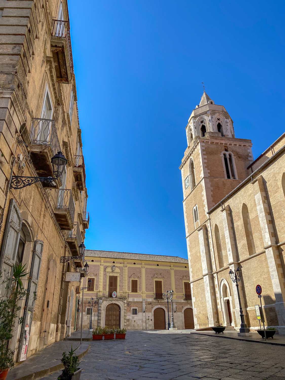 I packed my bags—for the millionth time in two months—and hopped on another train, leaving Rome on a Tuesday morning. Just a few hours later, I was in Foggia, from where I took a regional train to Lucera. The area around the train station did not look too promising and all I could think was… WHERE THE F* AM I? I couldn’t help but laugh at myself—how did end up here? I followed Google Maps through dusty narrow paths and finally crossed the Porta Troia, the ancient gate to the historic centre, which led me to a traditionally Italian town with cobblestone streets, cute balconies, ample piazzas, large stone churches, and even the ruins of a medieval castle just a short walk from the centre.